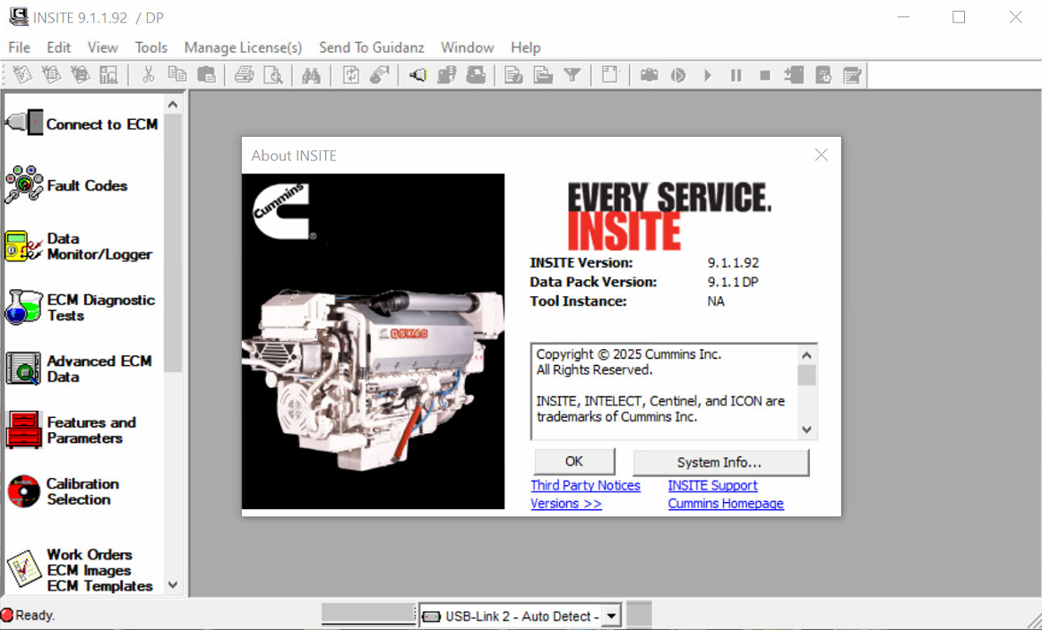 1NSITE 9.1 is a Microsoft Windows based electronic service diagnostic program that allows you to troubleshoot electronic engines.
