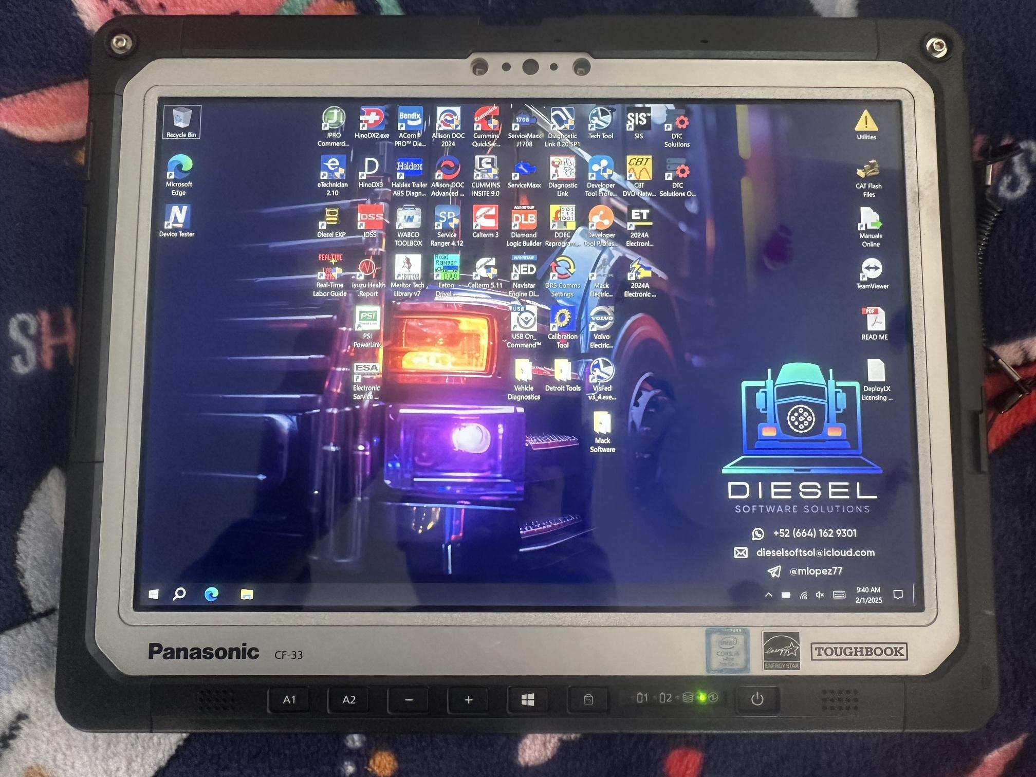 With this laptabletop you will be able to diagnose, reprogram (with some of the programs only), adjust parameters and run tests (cylinder cut out, DPF regen, etc) on all major Diesel brands.